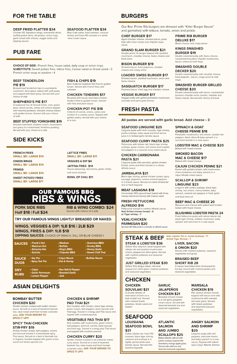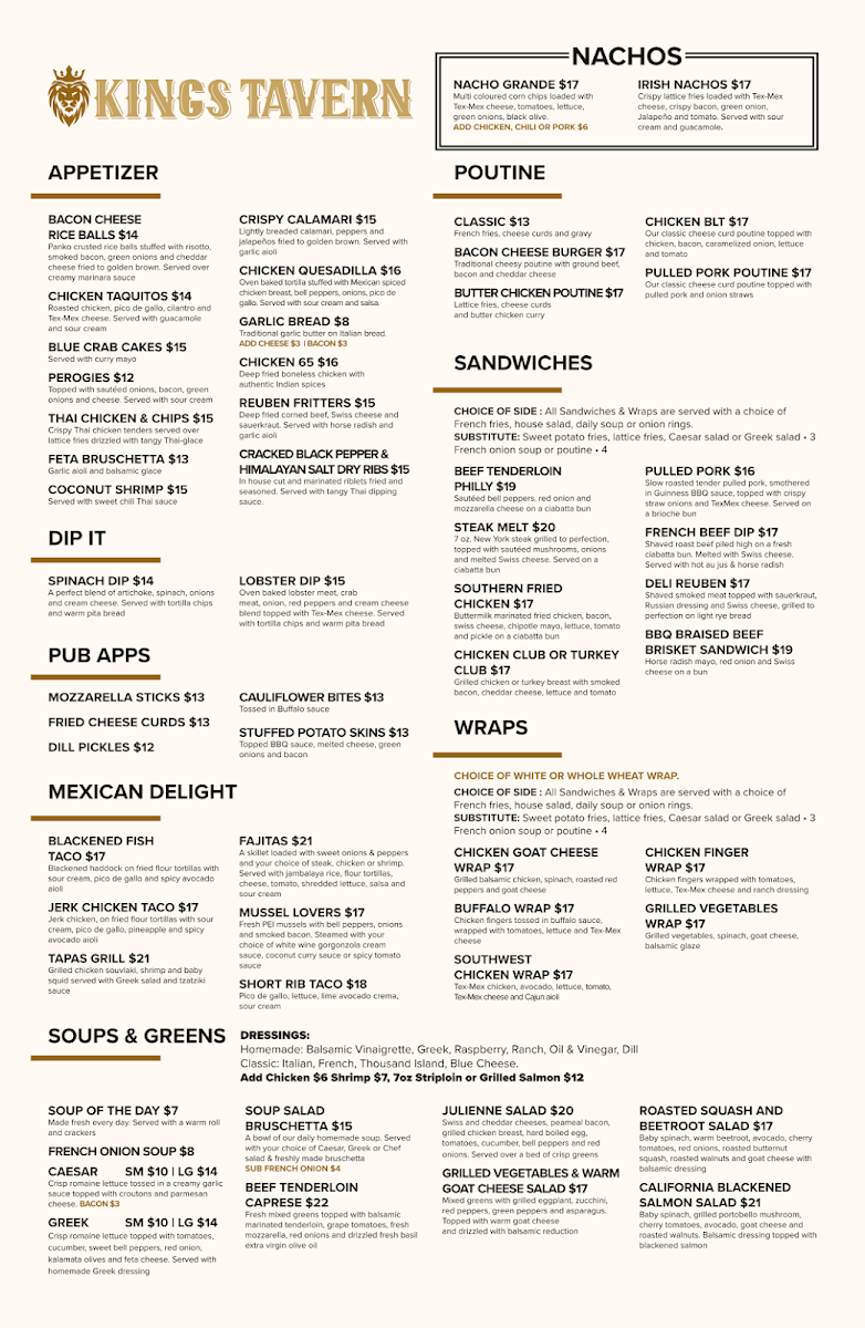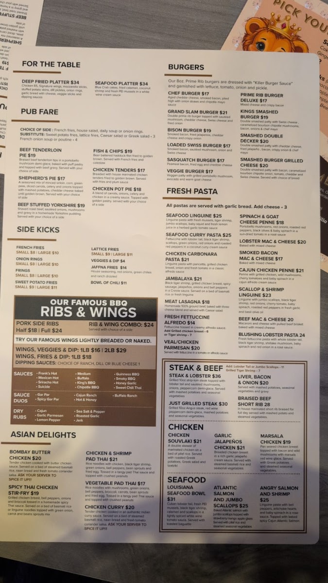 Welcome to Kings Tavern Whitby, where great food meets a vibrant atmosphere. Nestled in the heart of Whitby, this pub offers a delightful menu designed to cater to a variety of tastes. Begin your culinary journey with the tantalizing Nacho Grande or the crispy Irish Nachos, loaded with fresh toppings and Tex-Mex flavors. For the main course, the standout Steak & Lobster features a succulent strip loin paired with a luscious lobster tail, perfect for those cravings for indulgence.
